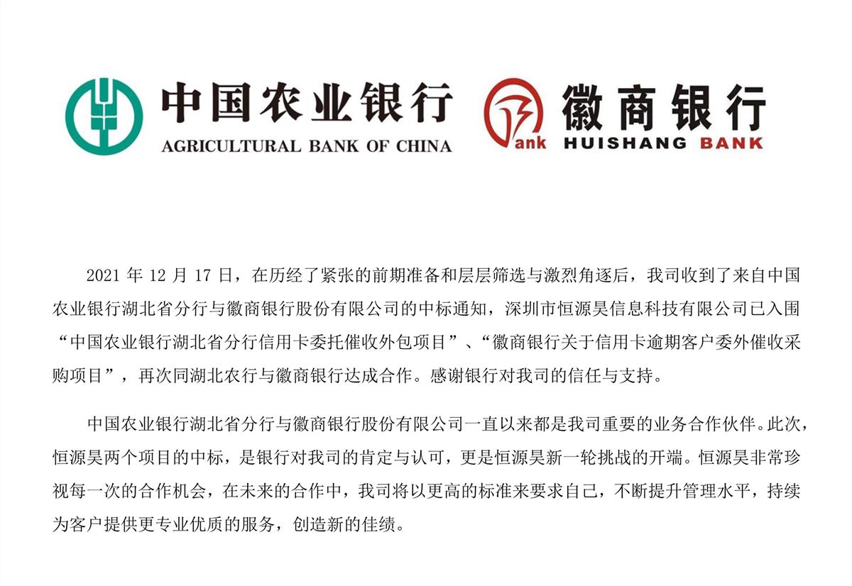 喜報(bào)!恒源昊中標(biāo)江西建行零售類逾期及不良貸款委外催收項(xiàng)目