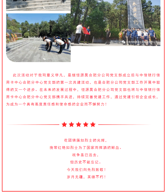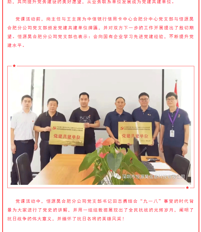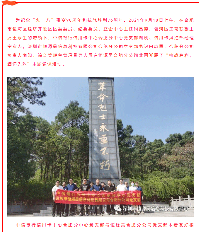 “抗戰(zhàn)勝利 緬懷先烈”——中信銀行信用卡中心合肥分中心黨支部與恒源昊合肥分公司黨支部共建活動(dòng)